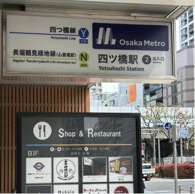 OsakaMetro四つ橋線四ツ橋駅からの道順を写真でご紹介いたします